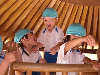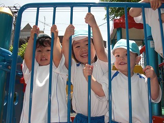 友達同士で遊具で遊んだり、先生を見つけて走り回ったり…。