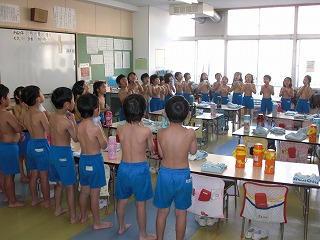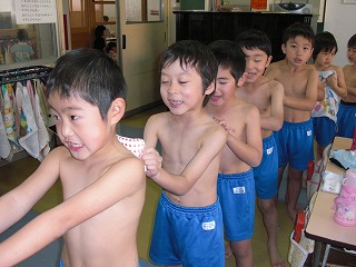 1,2,3,4…元気な声でしっかりと肌をこすって乾布摩擦です☆