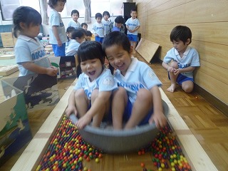 年長組では音楽を流さず、自分達で1から100を数えながらしています!