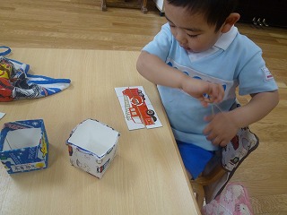 「今日のパズルは少し違います!」いつもより、4枚ピースが増え、8ピースで消防自動車を作りました(^-^)最初は少し難しそうでしたが、慣れてくると、2回、3回と完成させていました♪いつもと違うパズルで、子どもたちも楽しく取り組んでいましたよ!!
