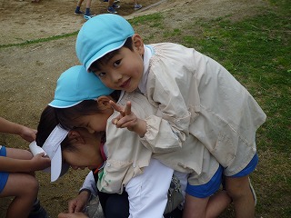 友達の背中をこずったりおなかをこすったり…。