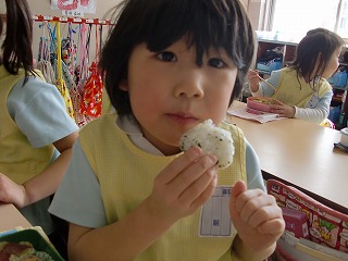 「おなかすいたー!!」元気一杯体を動かした後は、大好きな手作りのお弁当☆愛情たっぷりで栄養満点!!
