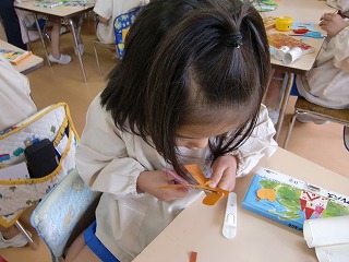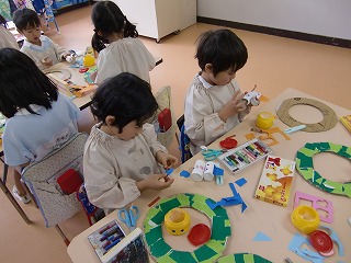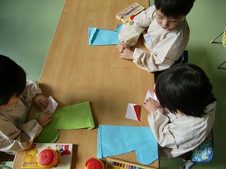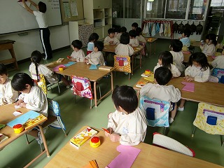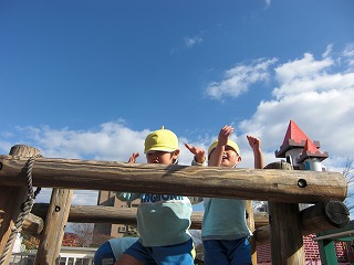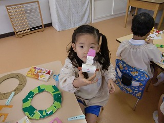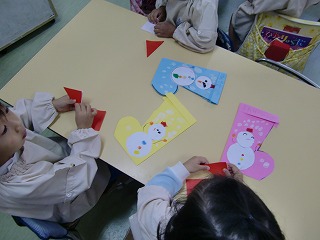 今日は楽しみにしていたクリスマス会☆サンタ探しゲームや英語の先生とカードゲームや歌をうたいました♪そして、そして…長丘幼稚園にサンタクロースが来てくれました。子ども達は大喜び!!サンタさんと一緒に「あわてんぼうのサンタクロース」を歌ったり、クイズしたり。教室に帰ると、サンタさんからの手紙とプレゼントがあり、みんなで「サンタさん、ありがとう」をお空に向かって言いました。