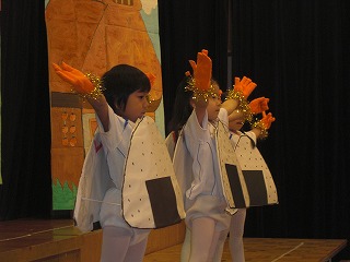 昨日はお遊戯会でした!最年少・年少組はお遊戯で体をたくさん動かして踊っていました。年中・年長組は台詞も入る劇に挑戦しました。お休みのお友達の分まで一生懸命頑張っていましたよ☆