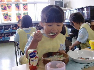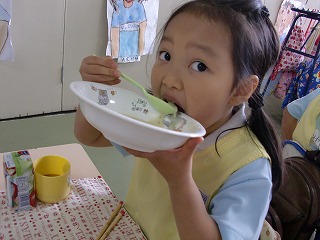子ども達の大好きな給食♪昨日は上位ランキングのクリームシチューでした!!「おかわりある??」と、ピカピカになったお皿を持っておかわりする姿も☆来週はどんなメニューか楽しみですね!!