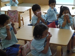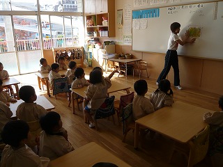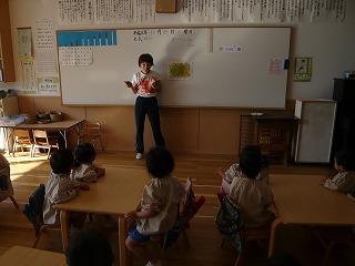 幼稚園では、昼食中にお箸の持ち方の指導を