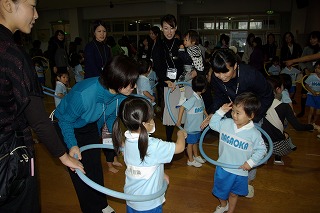 また、親子レクレーションでは、フープを使ってみんなで楽しく遊びました☆お母様方と子ども達の嬉しそうな笑顔に心温まる参観日でした!