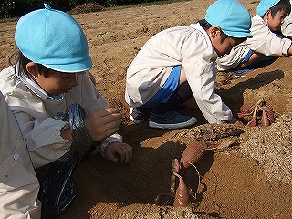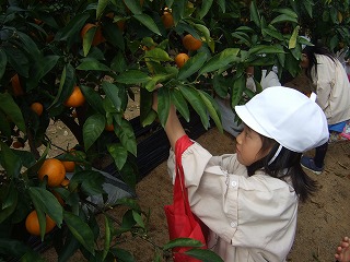 心配していたお天気もみんなの味方をしてくれました。 温かい一日で年少さんと年中さんは甘くておいしいみかんを クルクルしてとりました。年長さんは大きなおいもをほって おうちにおみやげです。さぁおいしい秋をめしあがれ♪