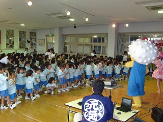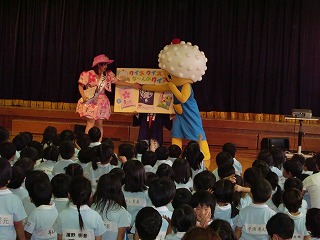 「早寝・早起き・朝ごはん」をテーマに、動く話やクイズ、曲に合わせて踊ったりしましたよ!!「早寝・早起き・朝ごはん」がしっかり守れると元気な体が作れるんだよってめしまるくんが教えてくれました☆幼稚園のみんなも元気な体をつくっていきたいと思います。