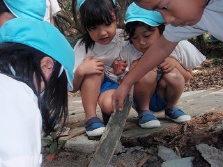 どんぐりを見つけたり、大きなミミズを見つけたり、、、色んなものを発見しましたよ♪