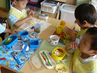 お弁当の時間になると、もう自分で準備をして、モリモリ食べています☆