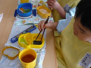 持ち方が難しいお箸にもチャレンジしているんですよ!