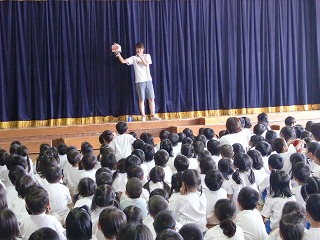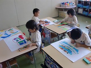 週に一回、子ども達が楽しみにしている英語レッスン♪♪ABCや数字の歌等、音楽に合わせて踊ったり、歌ったりとっても楽しんでいました☆新しく教わった Can I play?(一緒に遊ぼう?)も、外遊びの時使っていましたよ!!
