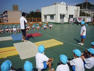金曜日は、年長組で体育レッスンがありました。跳び箱・鉄棒・マット