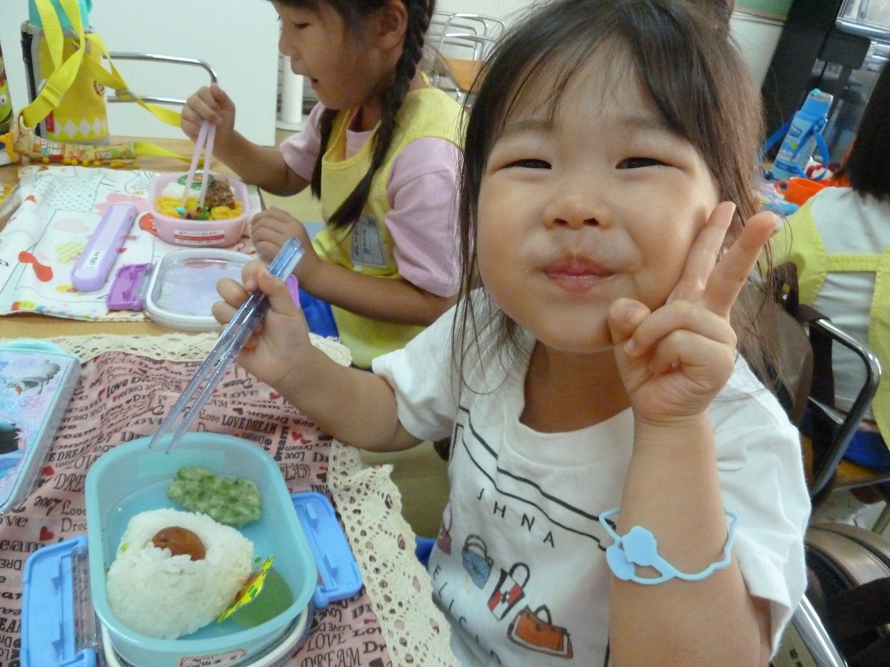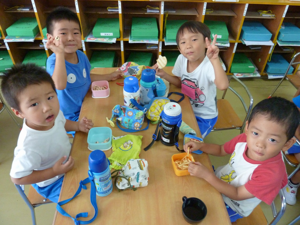 沢山遊んで、美味しいお弁当も食べて、みんなで仲良くおやつも食べます!いろんなクラスのお友達と、お話しもしながら食べる、おやつはとても美味しかったね♪