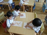 もうすぐ七夕まつり♪昨日は、七夕かざりを作りました。最年少は、のりを使って、四角や三角の折り紙をつなげ、色どりがきれいなひし形かざりと三角かざりを完成させました。笹に飾る日が楽しみですね(^-^)