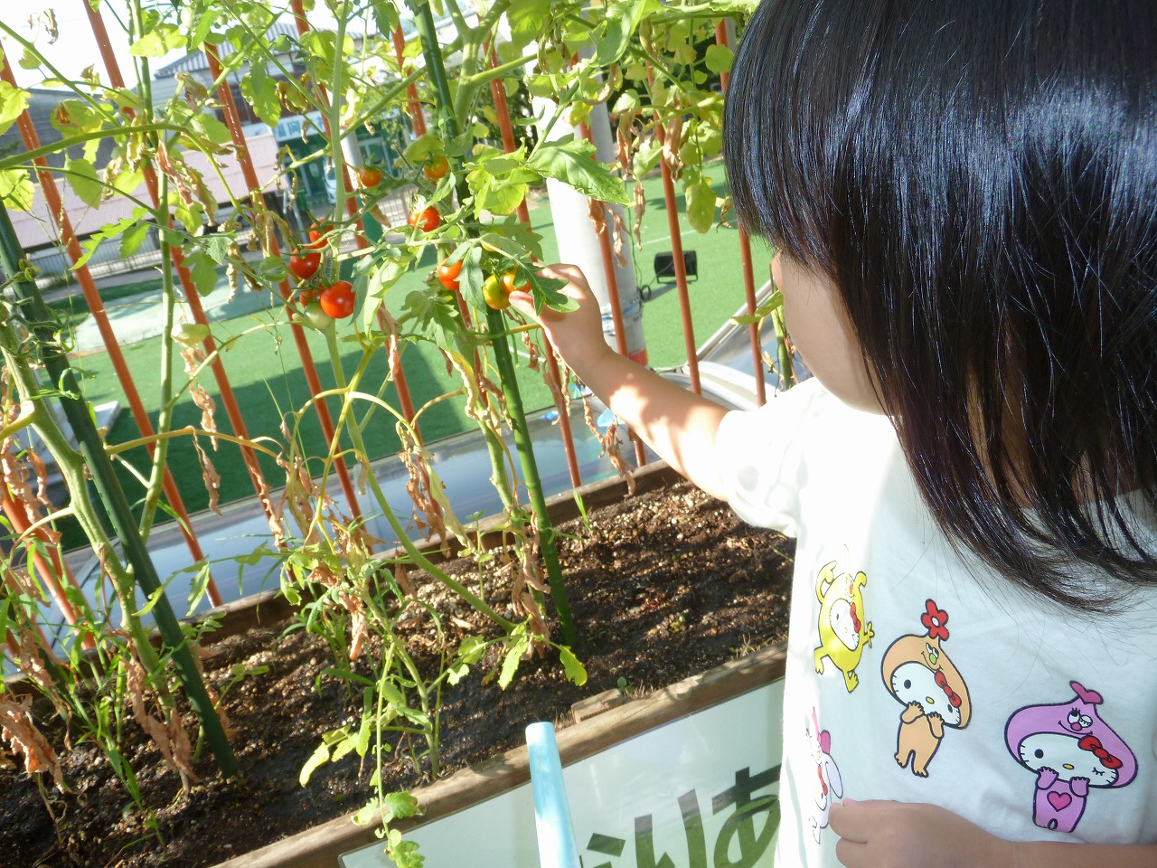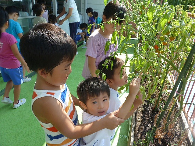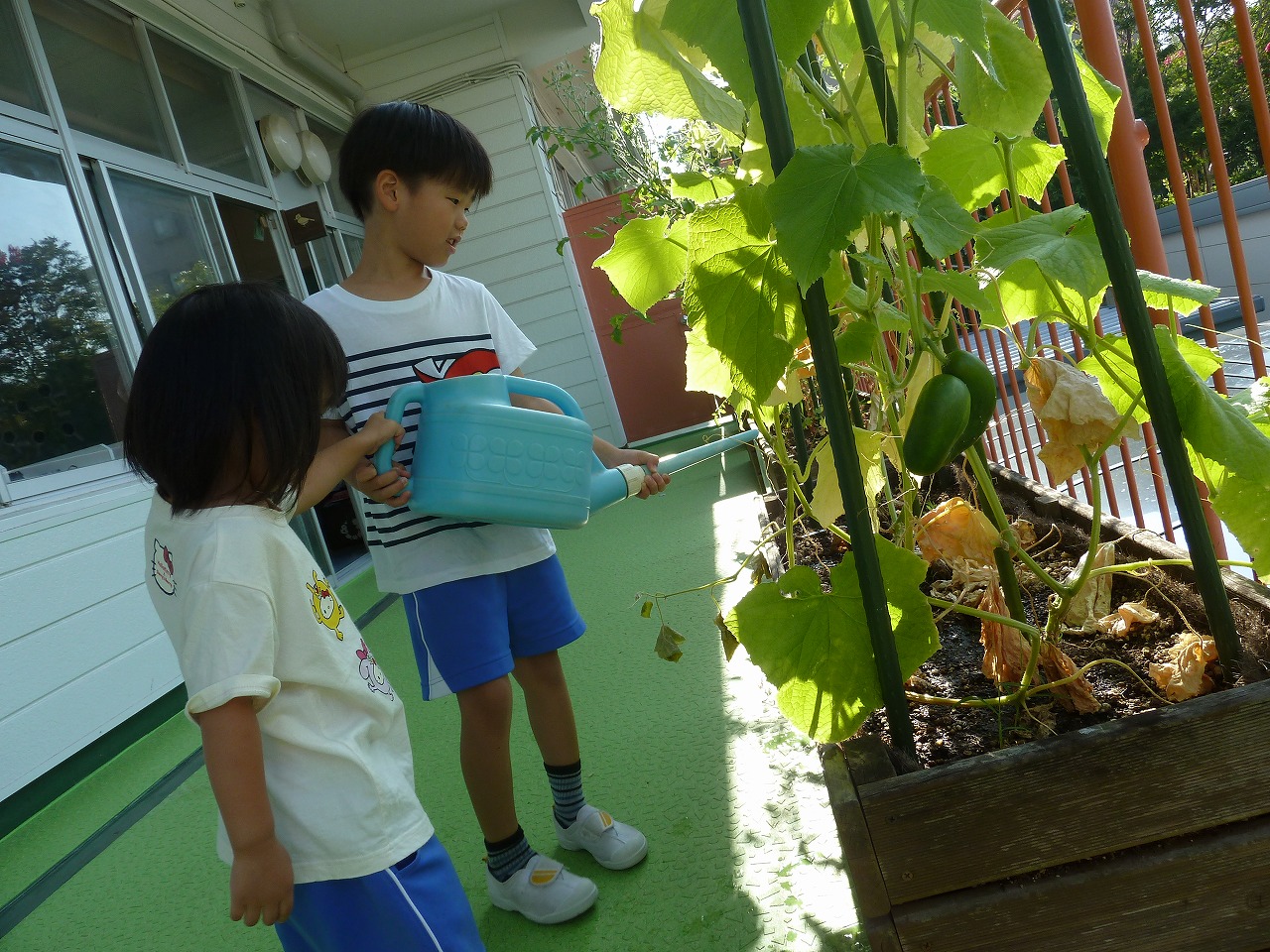 今日は朝から来てくれた子と一緒に、年長さんが育てている野菜に