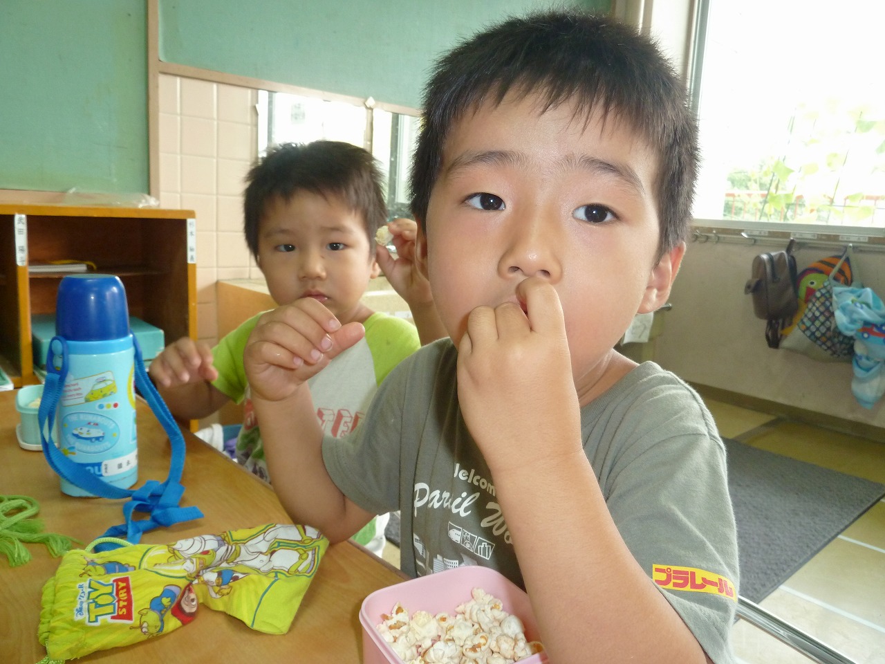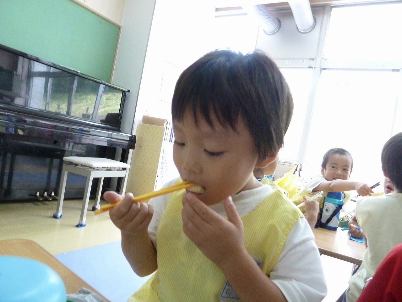 「おやつ早く食べたいな~!!」お昼寝のあとは待ちに待ったおやつの時間♪美味しいおやつに自然と笑顔になりますね(^^)
