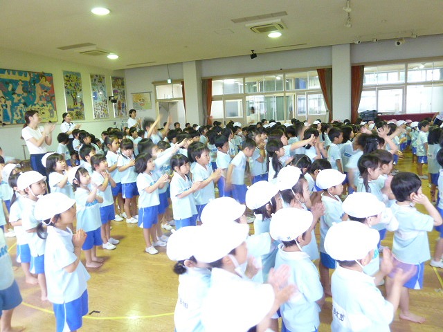 今日は4月生まれのおともだちの誕生日会!年長さんは大きくなったらなりたいもの、年中さんは好きなことをみんなの前で発表しました。明日は、年少さんと、最年少さんの発表があります!大きな声で言えるかな~??