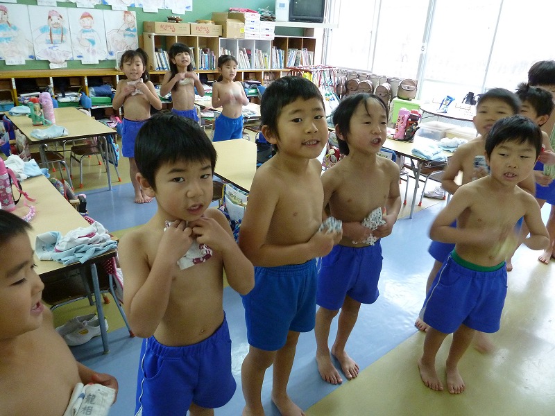 今日も寒さに負けず、みんなで乾布摩擦をしました♪