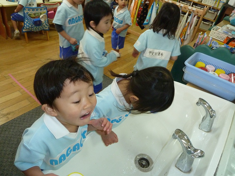 幼稚園でも手洗い・うがいを徹底して行なっています。