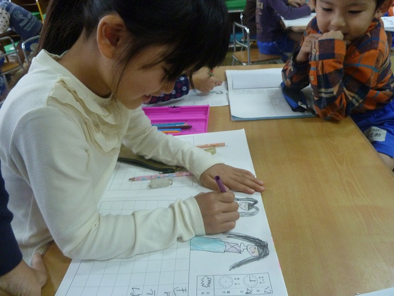 ホームクラスにきて遊んだ後は、絵日記をしました♪