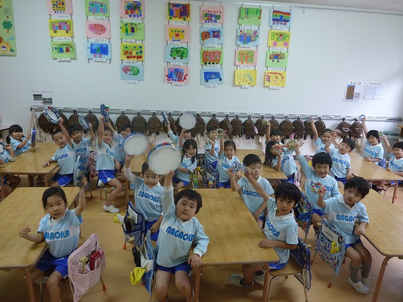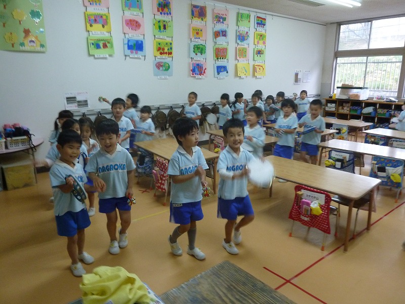お友達と一緒に歌に合わせて鈴とタンバリンで遊びました!!