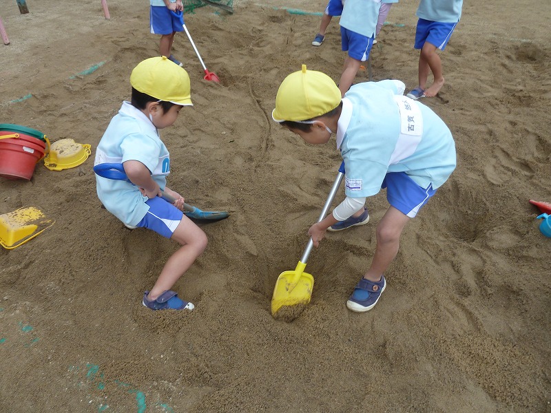 スコップを使って今日は穴掘りに夢中でした。