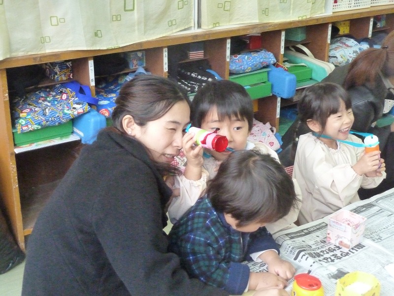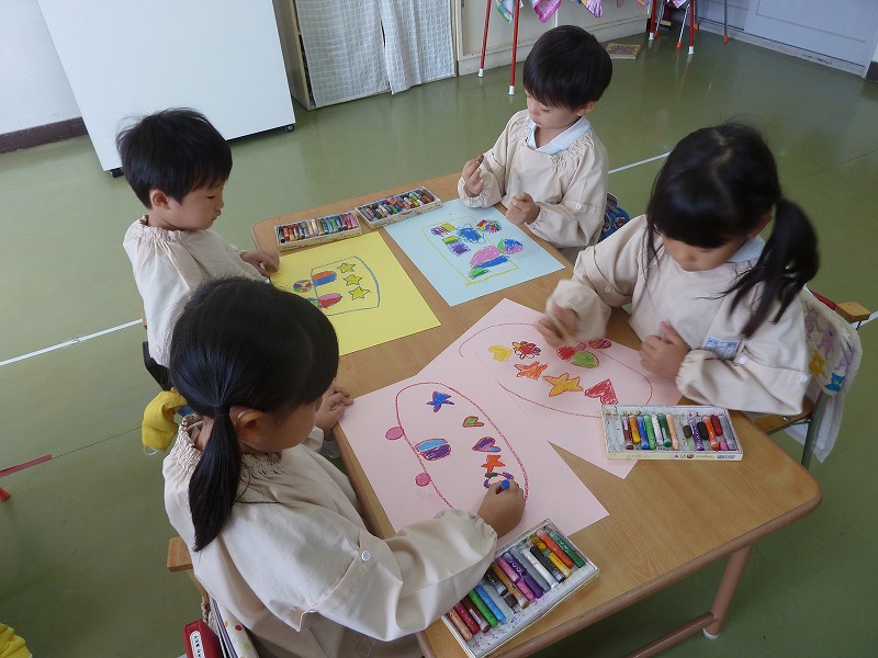 外から帰ってきたらしっかりと手洗いうがいをします。「お願い~お願い~♪」と、みんなで手洗いの曲を歌いながら洗うとピッカピカ!!うがいも ガラガラガラ~~指を使って十秒数えている子もいました。風邪をひかない元気な体をつくりましょうね!