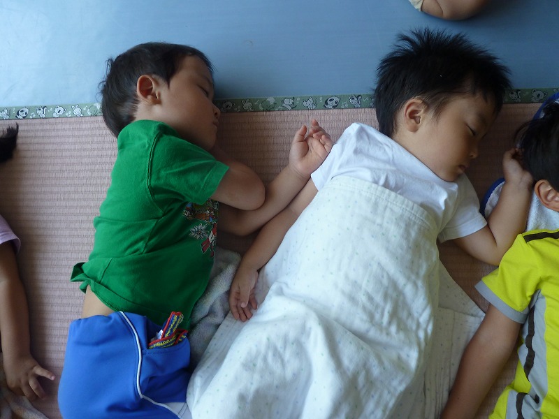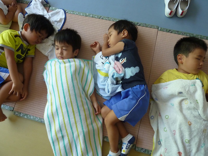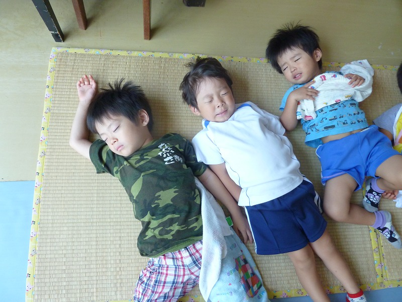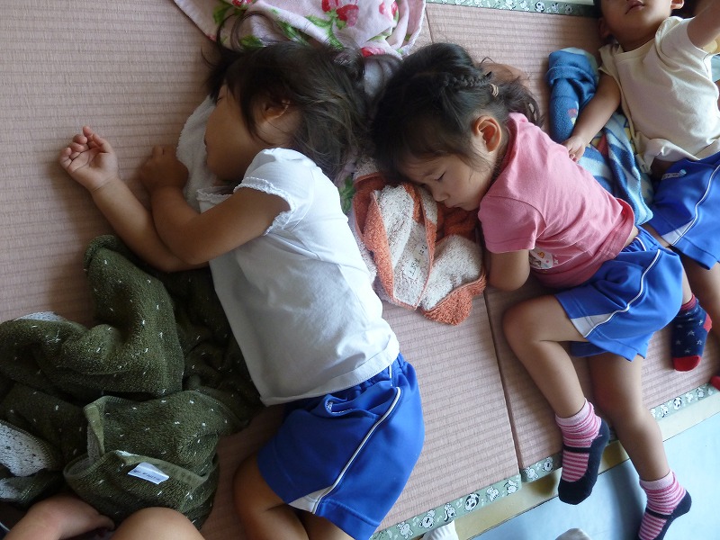 体を動かしたあとに、おなかいっぱいおいしいお弁当を食べたらお昼寝の時間・・・