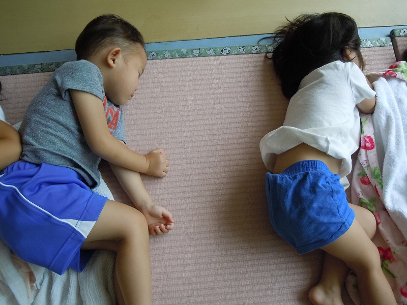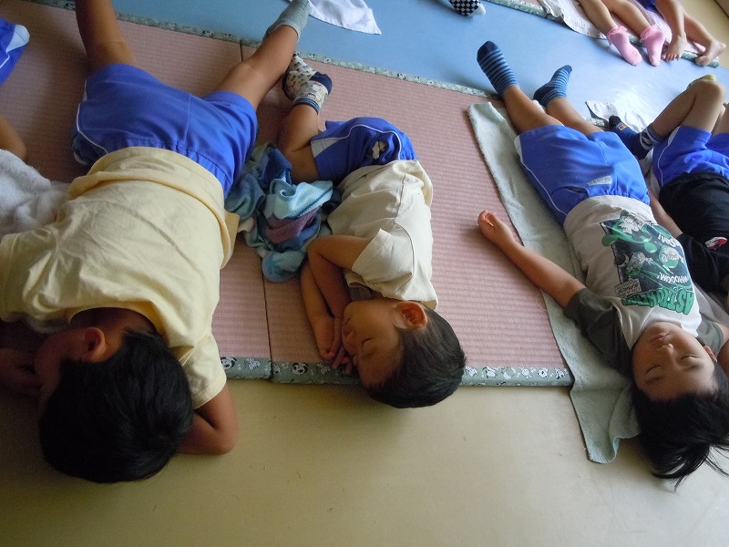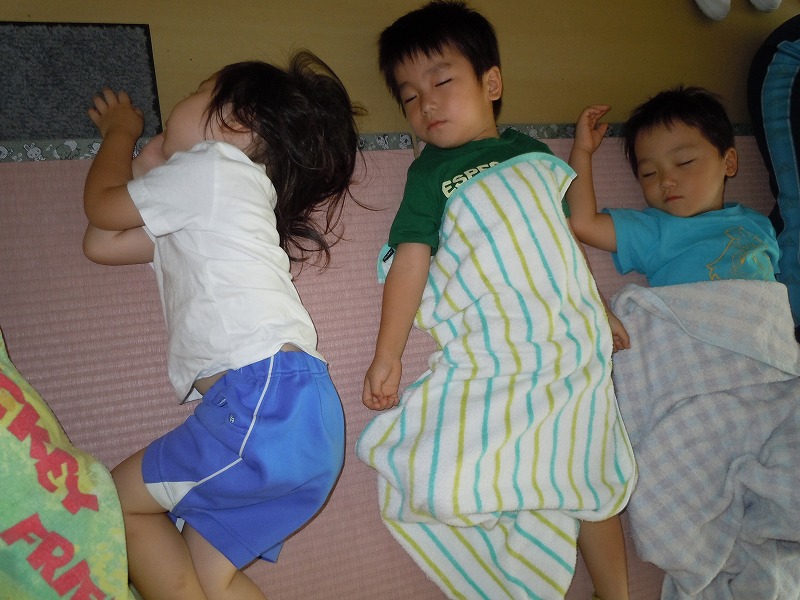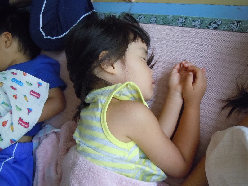 ご家庭で作っていただいた愛情たっぷりのお弁当を食べた後は、すやすやお昼寝time。