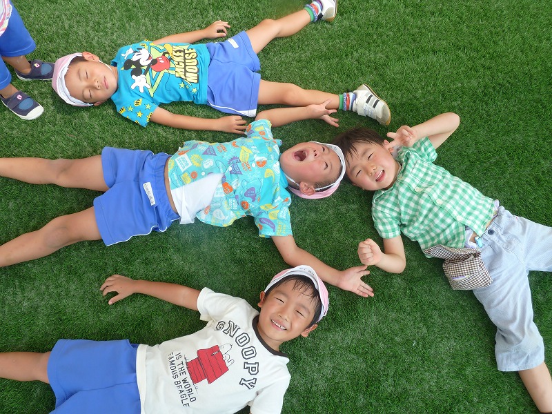 きれいになった園庭で元気いっぱい走り回ったり、気持ち良さそうに寝転んだり・・・