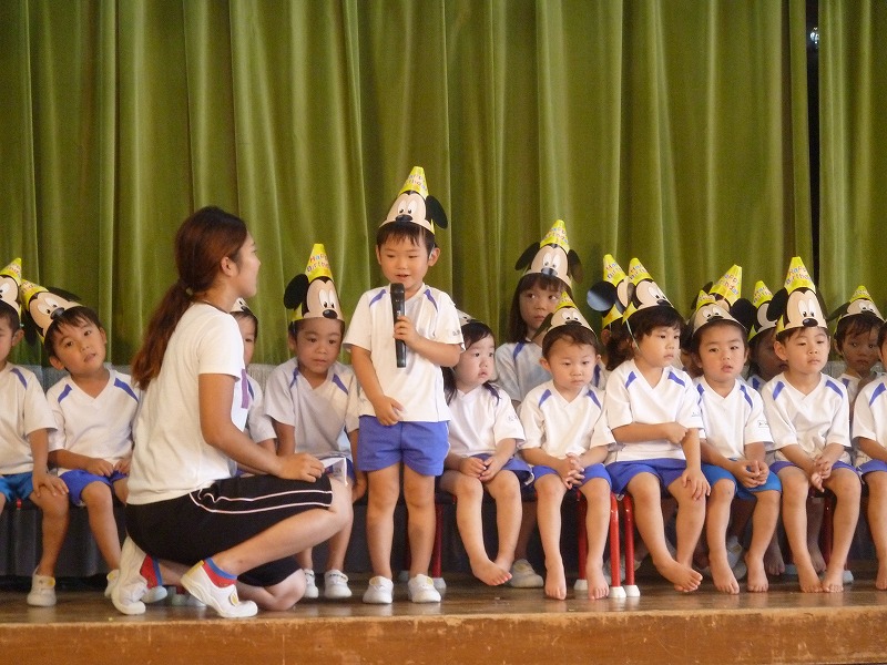 かわいいミッキーの帽子をかぶって、年中組のお友達が発表をしてくれました♪