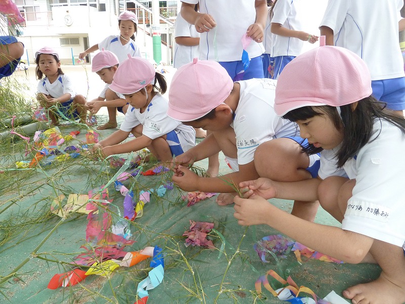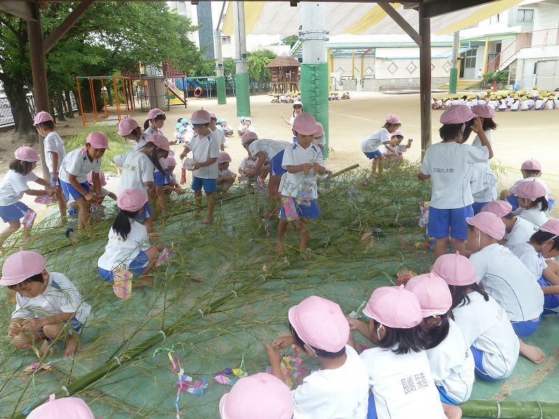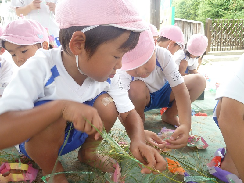 今日は笹飾りをしました。