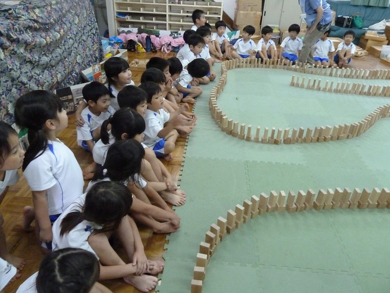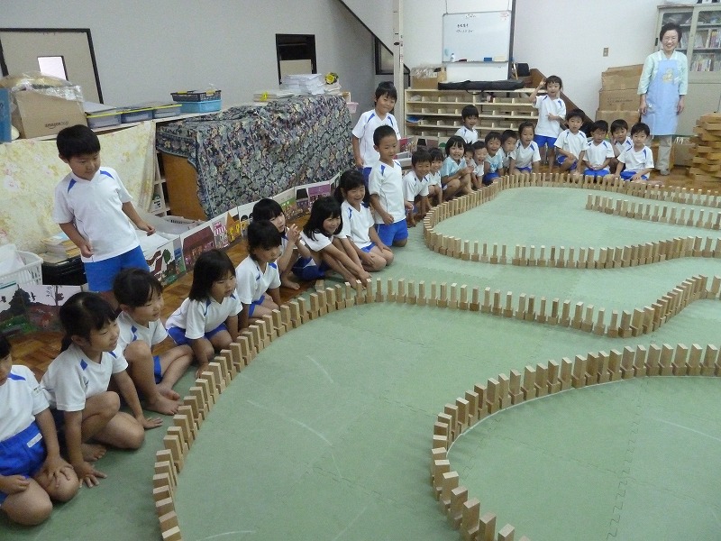 ドミノに挑戦したり、道をつくったり、小さな積み木で飾り付けをしたり…