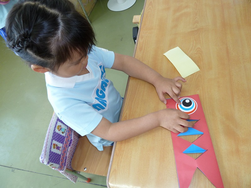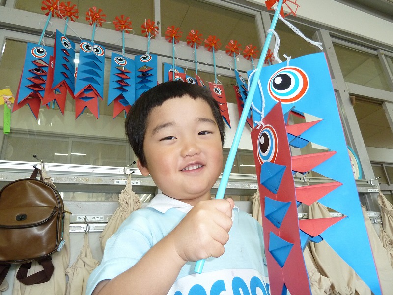 ♪やねよりたかいこいのぼり~子どもの日に向けてみんなでこいのぼりを作りました。のりやはさみを上手に使って満足の仕上がりに!!「先生みて~」と、どの子も大喜びでした。