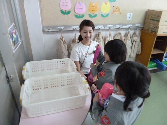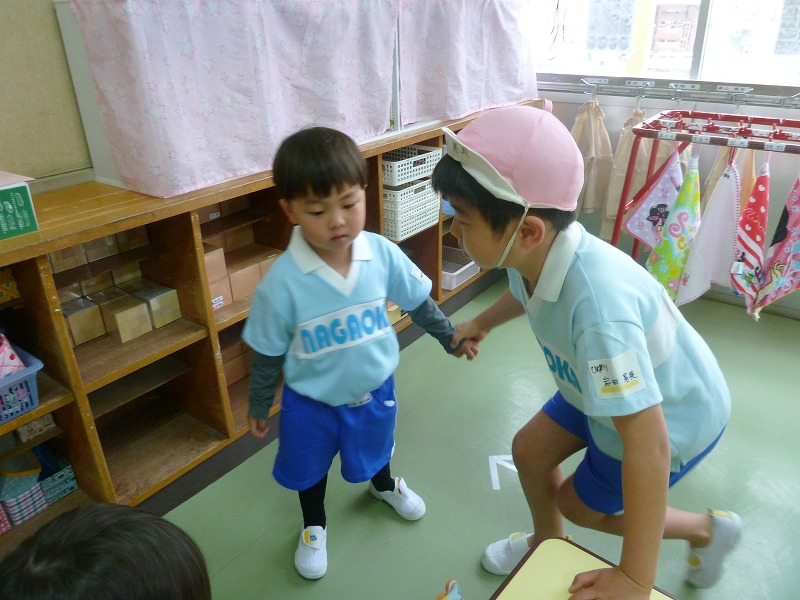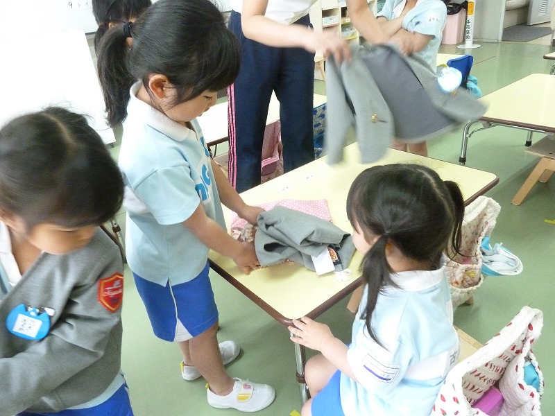 年長の優しいお兄さんお姉さんに教えてもらうと朝の準備もなんだか楽しい♪