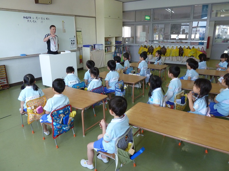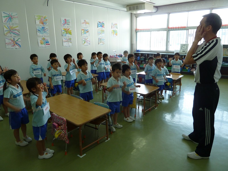 年中組での初めての英語レッスンをしました。