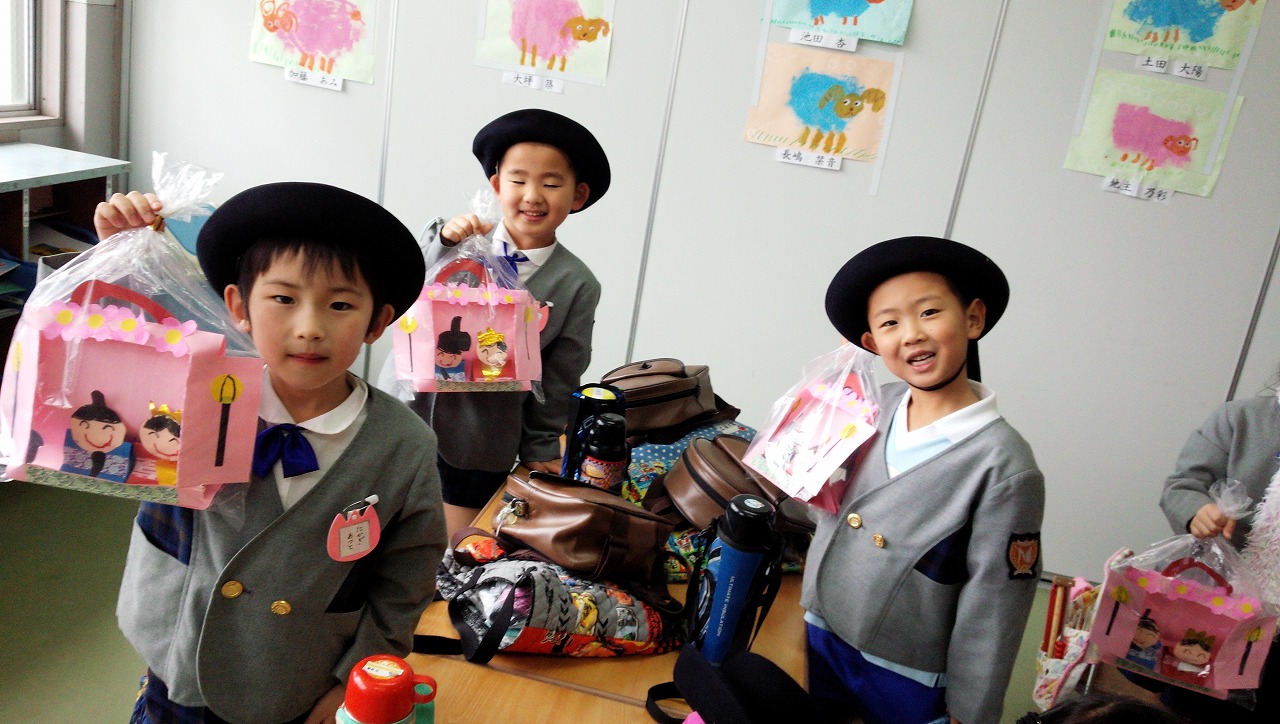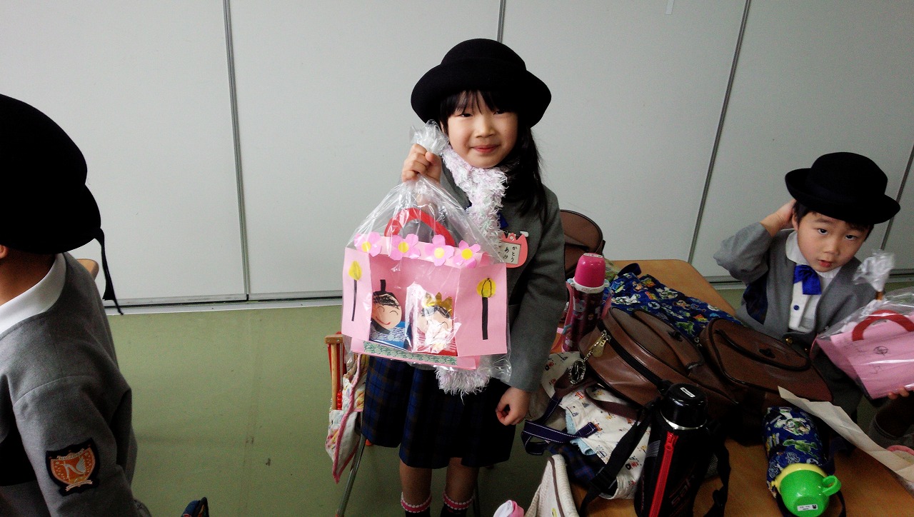 今日は3月3日ひな祭り。自分達で作ったひな人形を持って帰りました。お帰りの