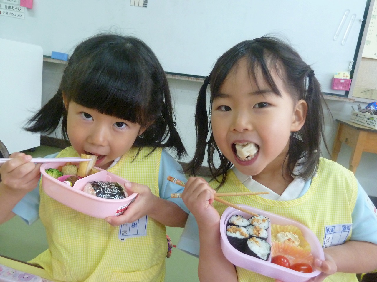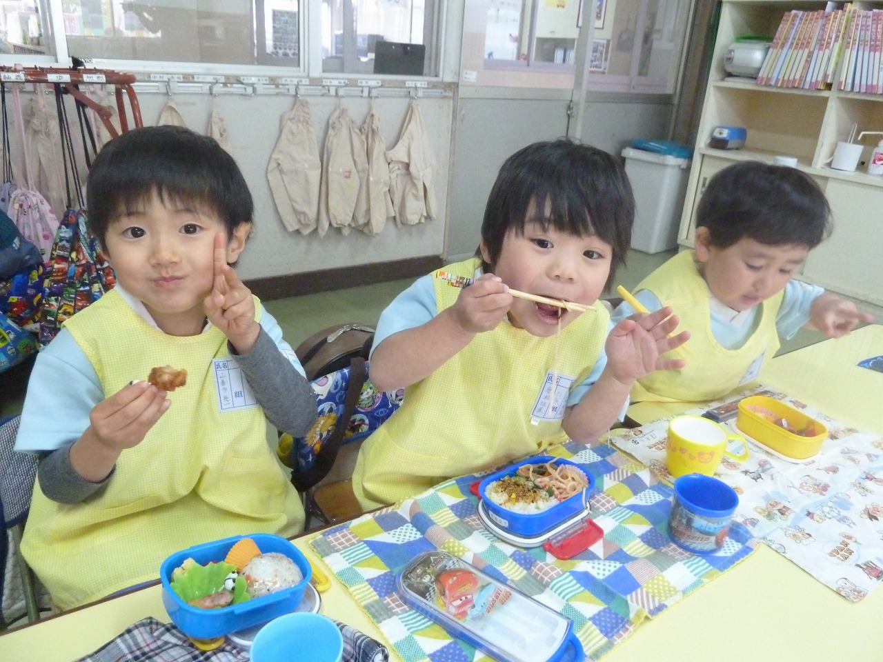 昨日は、今年度最後のお弁当の日でした。机を移動し、みんなの顔が見えるようにして、食べました。「お母さんの作ってくれたお弁当おいしい~♪」と、子ども達の笑顔。お家の人のお弁当は、世界で一番おいしいようです。