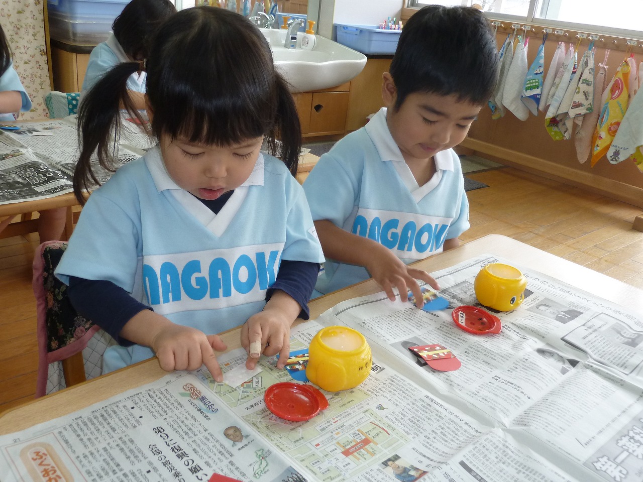 3月3日はひなまつり!ひなまつりにむけてひな人形作りまっ最中の子ども達!今日はおだいりさまとおひなさまに自分で染めたお着物を着せてあげました★もう少しで完成です!完成が楽しみですね♪